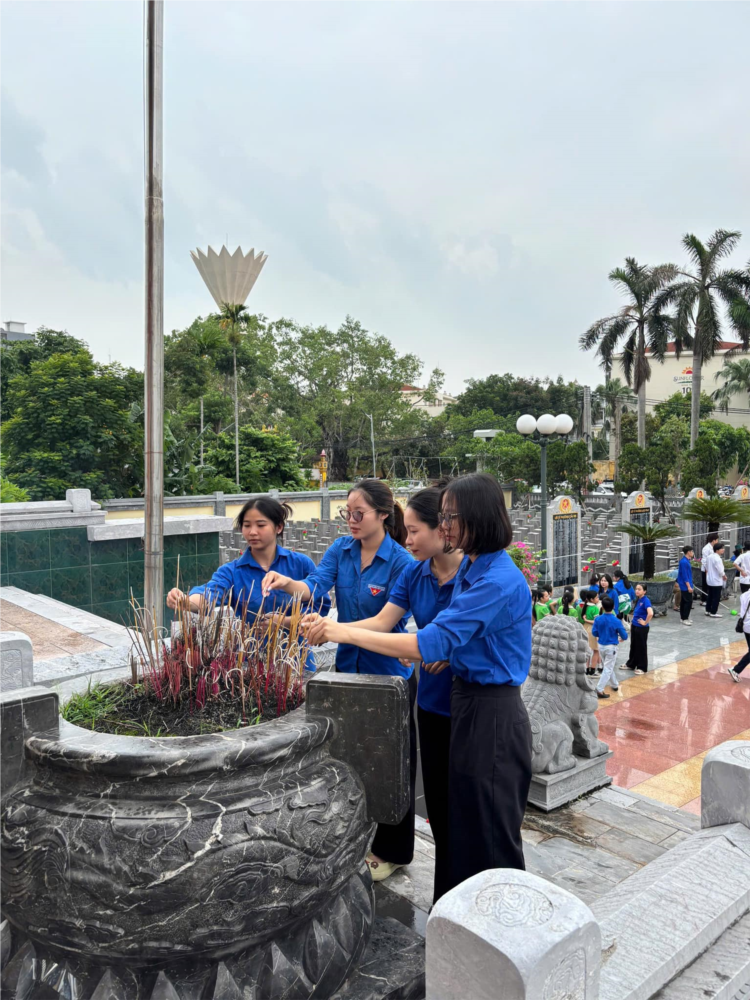 Với tinh thần “Uống nước nhớ nguồn”, các đoàn viên thanh niên đã cùng nhau làm sạch khuôn viên, nhổ cỏ, lau bia mộ, thắp hương tưởng niệm, thể hiện lòng biết ơn sâu sắc đến các liệt sĩ đã hi sinh vì sự nghiệp cách mạng vẻ vang của dân tộc.