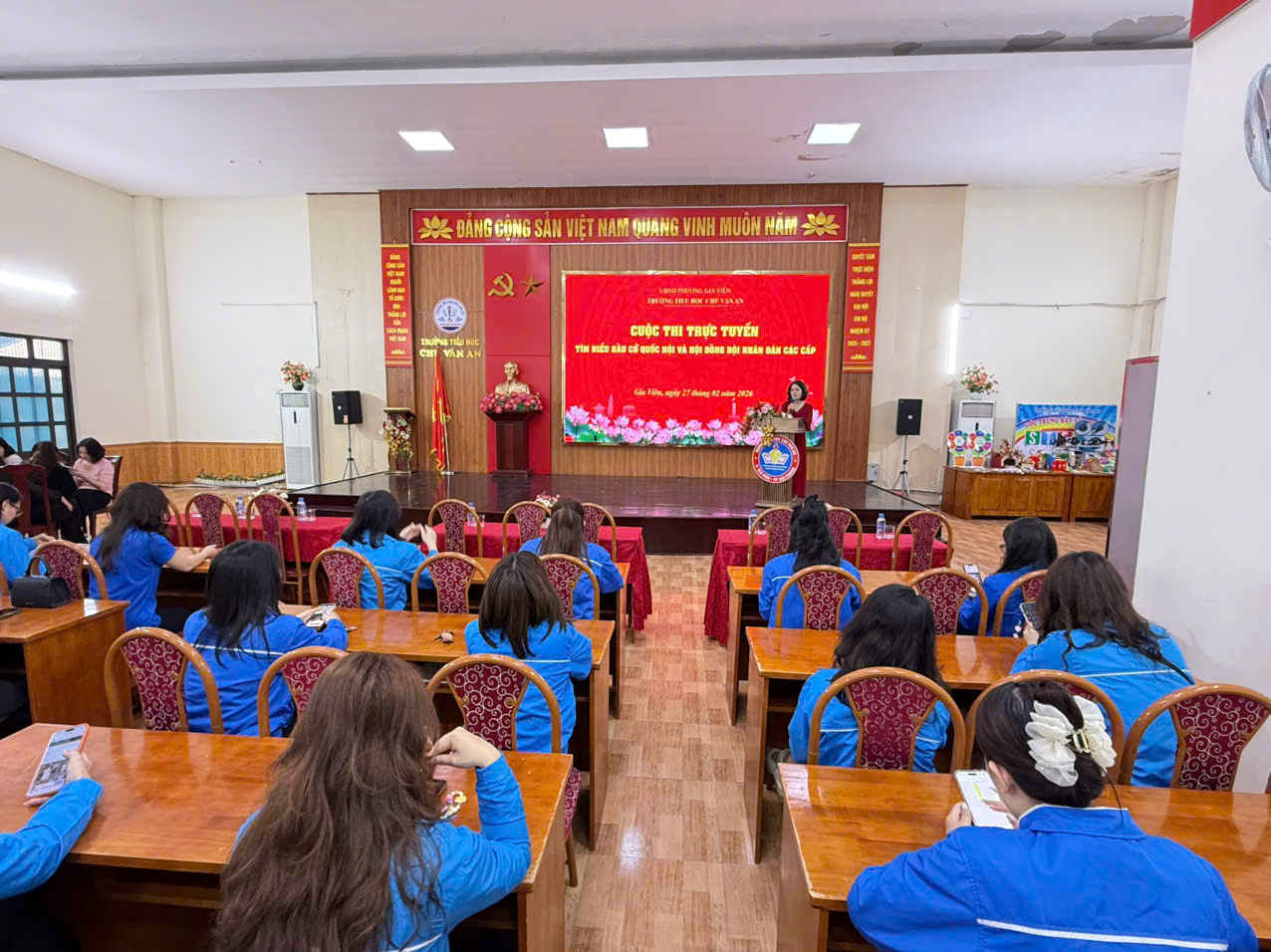 Hưởng ứng tinh thần học tập, tìm hiểu pháp luật và nâng cao nhận thức chính trị trong đội ngũ giáo viên trẻ; Sáng ngày 27/02/2026, tại nhà đa năng Chi đoàn giáo viên trường Tiểu học Chu Văn An đã tích cực tham gia cuộc thi trực tuyến “Tìm hiểu bầu cử Quốc hội và Hội đồng nhân dân các cấp”. Hoạt động không chỉ thể hiện trách nhiệm công dân mà còn lan tỏa tinh thần gương mẫu của đoàn viên thanh niên trong nhà trường.