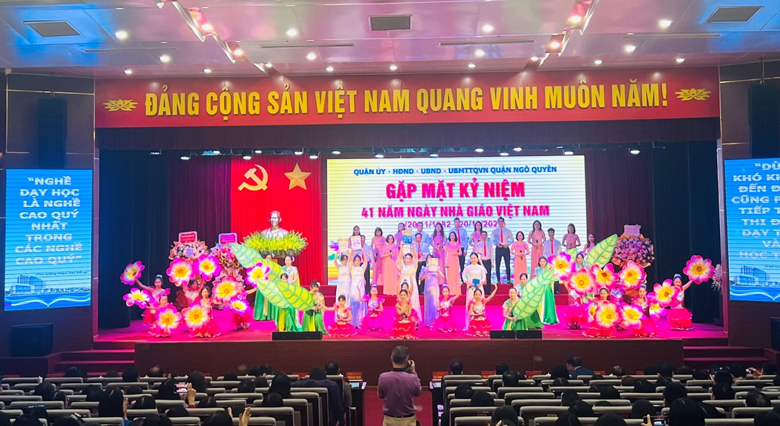 Nhân dịp Kỷ niệm 41 năm Ngày Nhà giáo Việt Nam (20/11/1982 - 20/11/2023); Chiều 16/11, Quận Ngô Quyền long trọng tổ chức Chương trình Gặp mặt kỷ niệm, tri ân đối với các thầy cô giáo, cán bộ, viên chức, nhân viên công tác trong ngành Giáo dục và Đào tạo Quận và Biểu dương phong trào thi đua “Dạy tốt, Học tốt”.