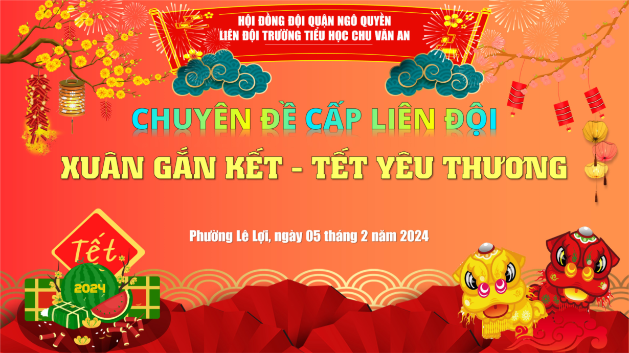 Với thông điệp "Sẻ chia, yêu thương", sáng ngày 05/02/2024 được sự cho phép của Ban giám hiệu nhà trường, Liên đội Trường Tiểu học Chu Văn An đã tổ chức chuyên đề cấp Liên đội “Xuân gắn kết -Tết yêu thương”. Chương trình nhằm mục đích ủng hộ học sinh của nhà trường có hoàn cảnh khó khăn trong dịp Tết Nguyên đán 2024; qua đó giáo dục tinh thần tương thân, tương ái, “Lá lành đùm lá rách” và hình thành nhân cách tốt đẹp cho các em học sinh.