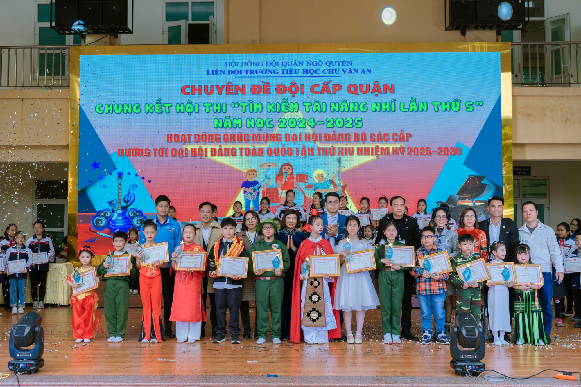 Thực hiện Chương trình công tác Đội và phong trào thiếu nhi năm học 2024-2025. Hôm nay, Liên đội Tiểu học Chu Văn An long trọng tổ chức Chuyên đề đội cấp Quận Chung kết hội thi “Tìm kiếm tài năng nhí lần thứ 5” , năm học 2024 – 2025. Thiết thực chào mừng Kỷ niệm 80 năm ngày thành lập quân đội nhân dân Việt Nam, chào mừng Đại hội Đảng bộ các cấp, tiến tới Đại hội Đảng toàn quốc lần thứ XIV nhiệm kỳ 2025 – 2030.