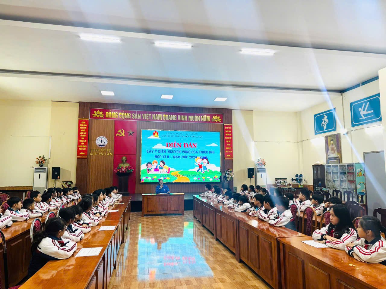 Để nắm bắt tâm tư, nguyện vọng của các em học sinh trong năm học 2024 - 2025,Ngay từ học kì I Liên đội trường TH Chu Văn An đã tổ chức diễn đàn lấy ý kiến, nguyện vọng của học thiếu nhi. Để tiếp tục thu nhận nhiều ý kiến nguyện vong hơn, cũng như để hiểu rõ thiếu nhi hơn, học kì II năm học 2024 - 2025 Liên đội tiếp tục tổ chức diễn đàn lấy ý kiến, nguyện vọng của thiếu nhi.