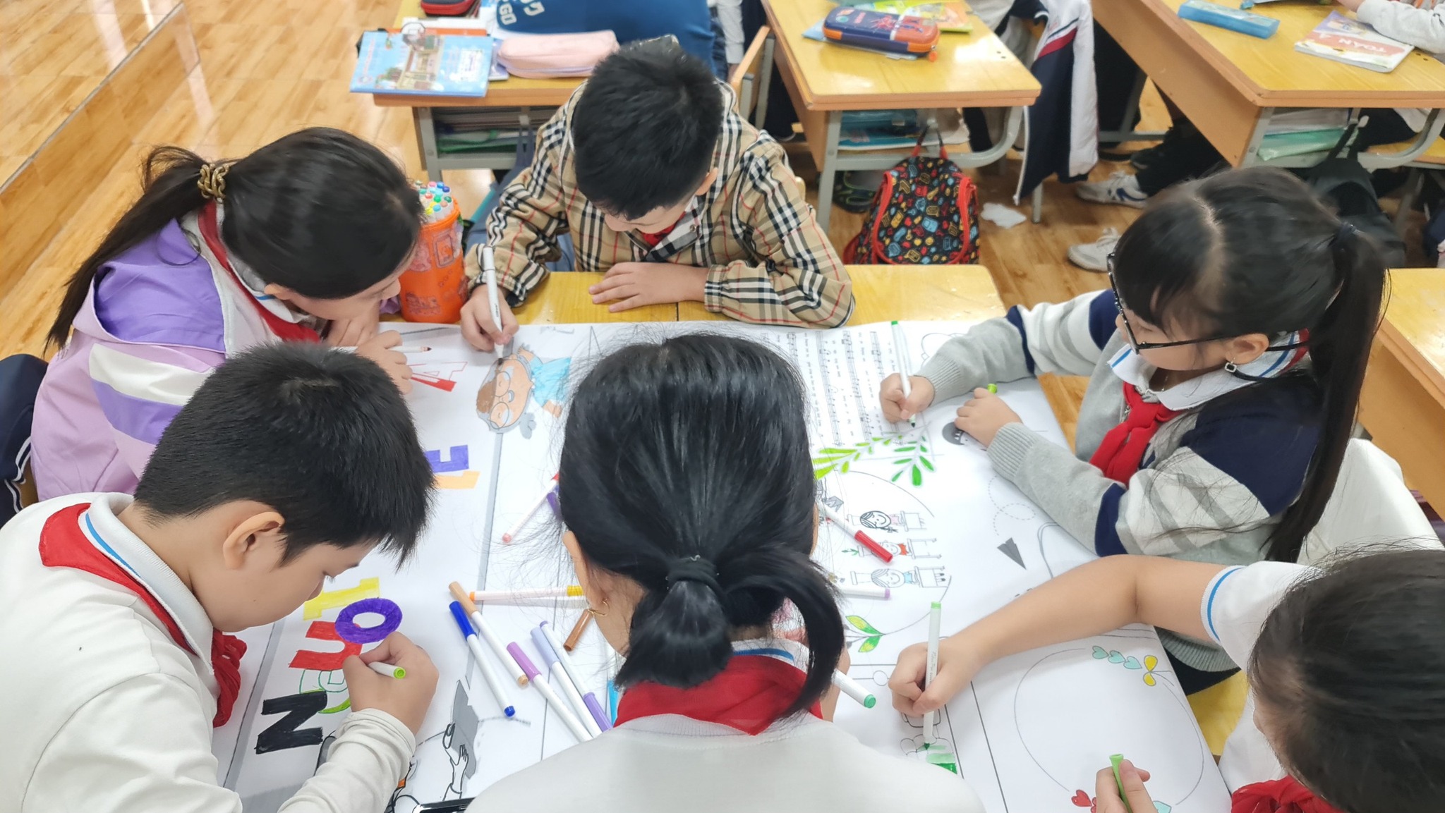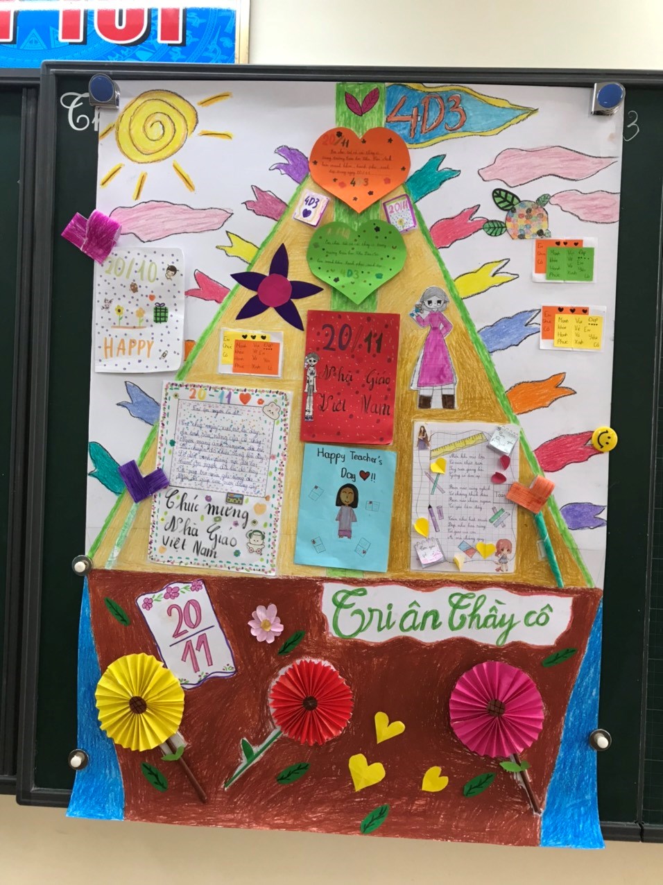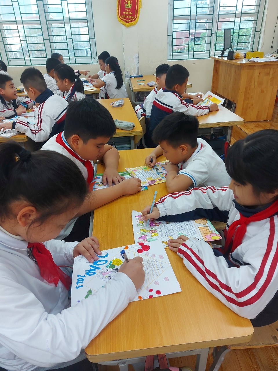 Để tỏ lòng tri ân thầy cô giáo nhân ngày 20/11, các em học sinh trường Tiểu học Chu Văn An đã tự tay thiết kế báo tường và làm những tấm thiệp xinh xắn với những lời chúc thật ngọt ngào và ý nghĩa để tặng các thầy các cô.