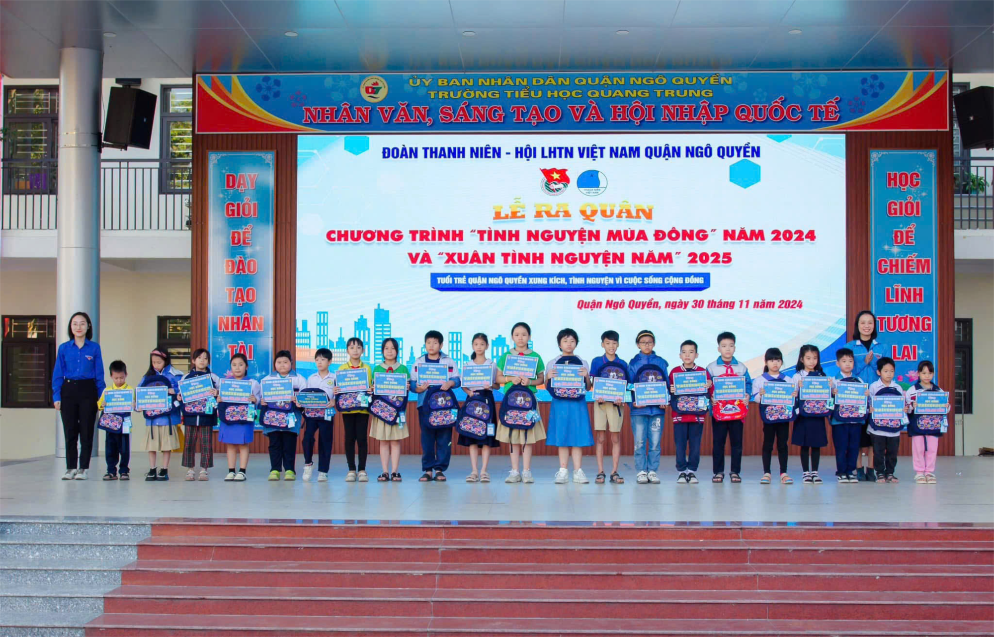 Chiều ngày 30/11/2024, Ban Thường vụ Đoàn Quận Ngô Quyền tổ chức Lễ ra quân Chương trình"Tình nguyện mùa đông" năm 2024 và Xuân tình nguyện năm 2025". Tại chương trình Liên đội trường Tiểu học Chu Văn An đã trao biển ủng hộ Chương trình “Tình nguyện mùa đông” với số lượng 20 chăn ấm, 16 đàn gà, 20 suất học bổng, 3300 quyển vở ô ly hơn 3000 các loại đồ dùng, cặp sách và 40 chiếc áo khoác mùa đông.