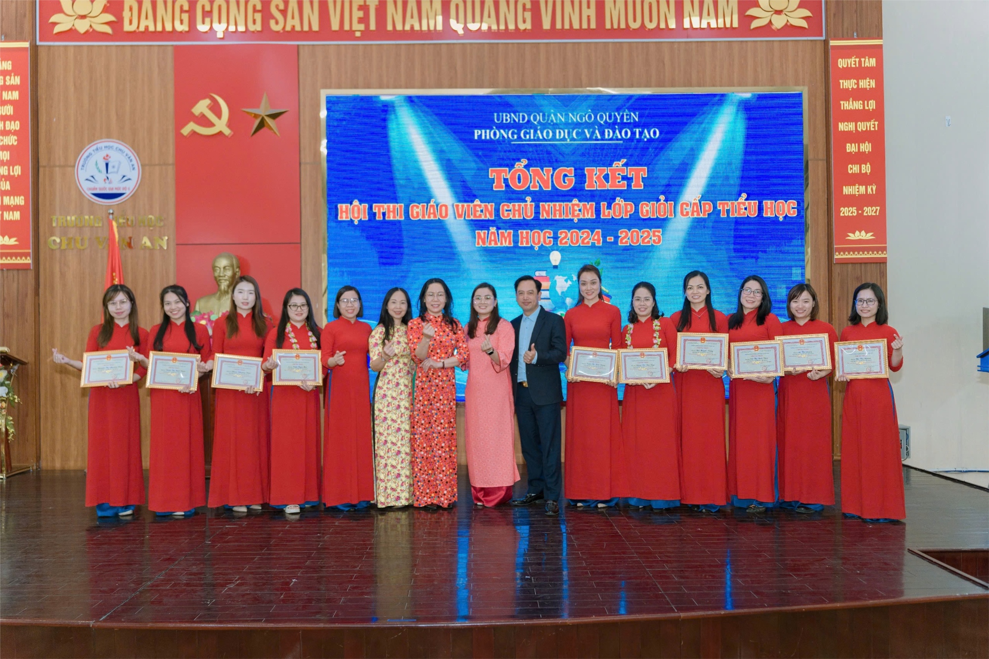 Hội nghị đã biểu dương 11 đ/c giáo viên đạt kết quả xuất sắc trong Hội thi và tôn vinh 45 giáo viên đạt danh hiệu giáo viên chủ nhiệm giỏi cấp quận năm học 2024 - 2025.