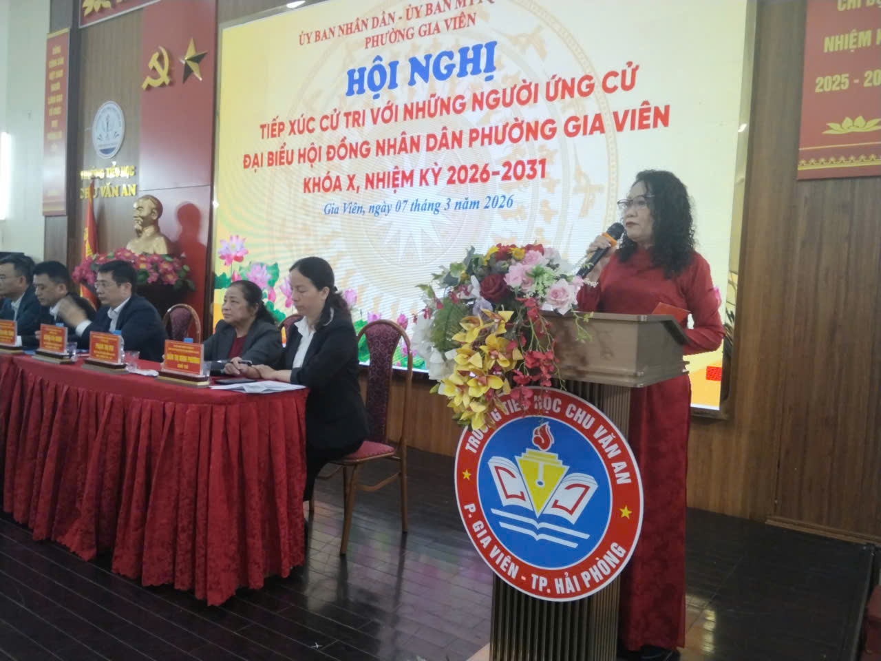 Nhằm tạo điều kiện để cử tri gặp gỡ, trao đổi trực tiếp với những người ứng cử đại biểu Hội đồng nhân dân phường; Sáng ngày 07/3/2026, tại nhà đa năng trường Tiểu học Chu Văn An, UBND - UBMTTQ Việt Nam phường Gia Viên đã phối hợp tổ chức “ Hội nghị tiếp xúc cử tri với những người ứng cử đại biểu Hội đồng nhân dân phường Gia Viên khóa X, nhiệm kỳ 2026 - 2031 ”.