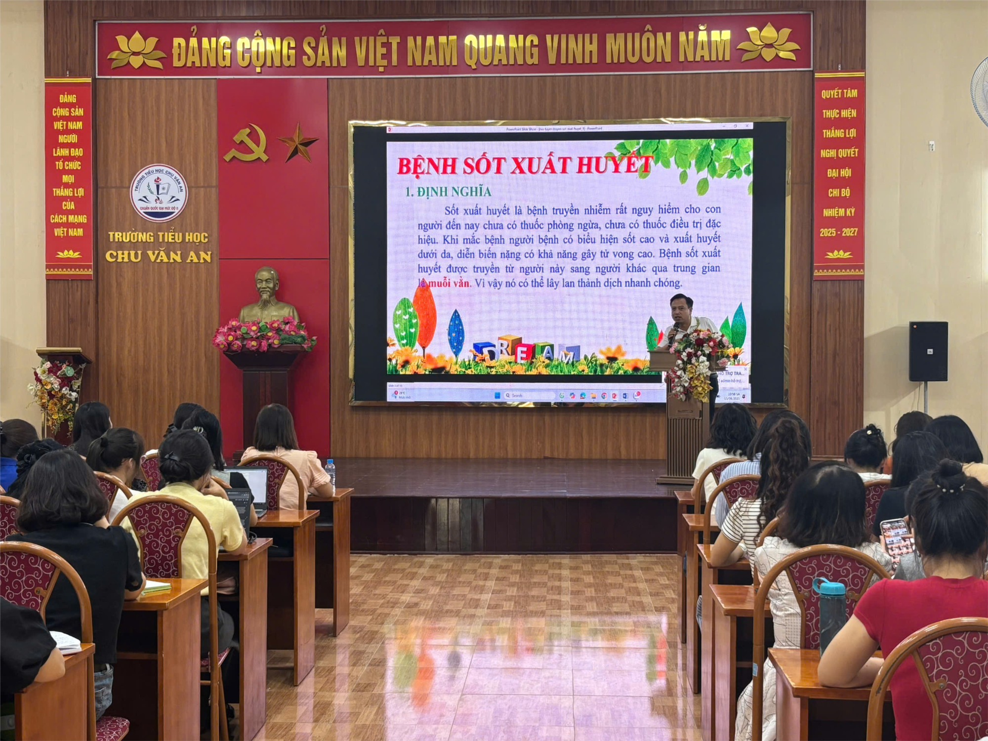 Nhằm nâng cao nhận thức và ý thức phòng, chống bệnh sốt xuất huyết Dengue trong nhà trường, ngày 14 tháng 8 năm 2025, Ban giám hiệu trường Tiểu học Chu Văn An đã tổ chức buổi tuyên truyền chuyên đề dành cho toàn thể cán bộ, giáo viên và nhân viên.