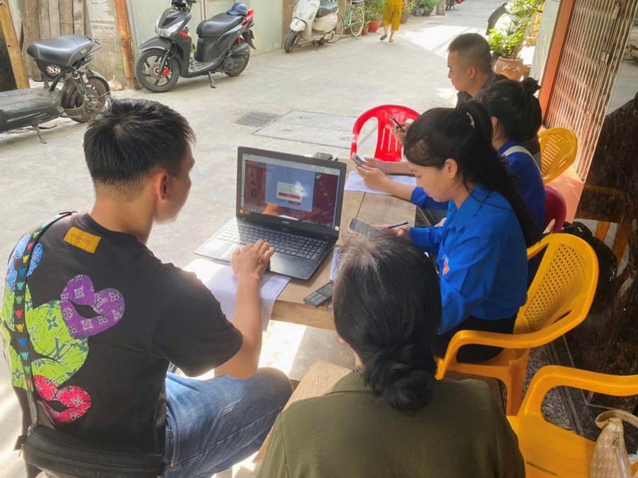 Ngoài tuyên truyền về tiện ích, ý nghĩa của ứng dụng VneID nhằm thay thế những giấy tờ truyền thống, đoàn viên thanh niên và lực lượng Công an trực tiếp hỗ trợ, hướng dẫn người dân kích hoạt tài khoản ĐDĐT mức độ 2 và hướng dẫn sử dụng một số dịch vụ công trực tuyến trên điện thoại thông minh.
