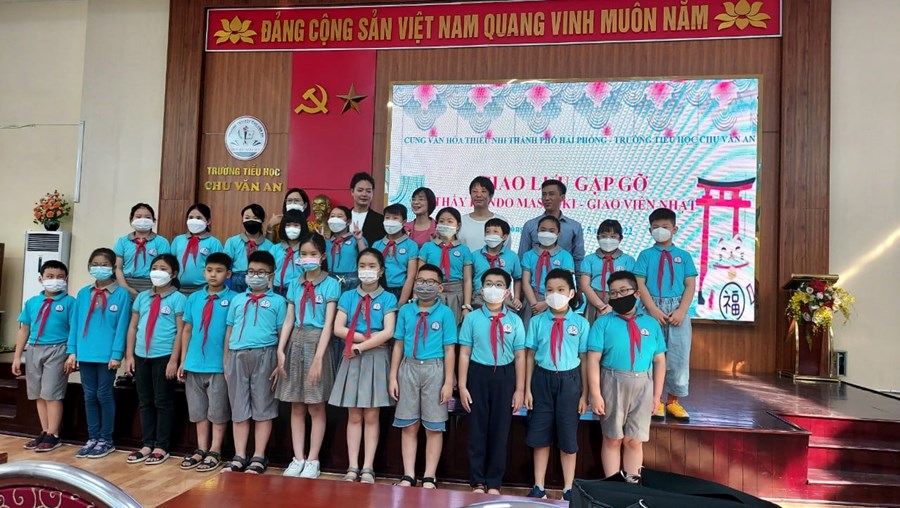 Trong khuôn khổ các hoạt động giao lưu, ngoại khóa hướng tới chủ điểm “Tình hữu nghị”, chiều ngày 05/5/2022, nhà trường đã phối hợp với Cung Văn hóa thiếu nhi thành phố Hải Phòng tổ chức buổi giao lưu gặp gỡ giữa các em học sinh lớp 4D5 với thầy Kondo Masaoki - Giáo viên Tiếng Nhật.
