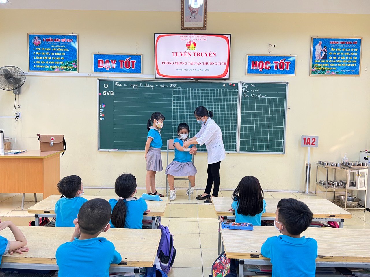 Để phòng tránh TNTT cho trẻ, các thầy cô giáo trong hội đồng sư phạm nhà trường phối kết hợp với cán bộ y tế trường Tiểu học Chu Văn An đã chủ động tuyên truyền, nâng cao nhận thức cho các em học sinh về kỹ năng phòng, chống tai nạn thương tích. Qua buổi tuyên truyền các em đều hiểu TNTT là khó tránh khỏi trong cuộc sống hằng ngày, điều quan trọng là chúng ta xử lý ra sao, cách nhận biết những nơi có thể gây nguy hiểm. Biết thận trọng khi chơi với những đồ vật có thể gây nguy hiểm như: cây, gậy, dao, kéo, súng đồ chơi…; biết cách phòng tránh và xử lý khi bị ngã, chảy máu: học cách xử lý khi bị thương nhẹ, cách sơ cứu khi bị chảy máu, biết cách tìm sự trợ giúp khi xảy ra các tình huống tai nạn; phòng tránh và xử lý khi bị gãy tay, chân, cách tìm kiếm sự giúp đỡ khi ở nhà một mình, khi đi chơi, khi ở trường học…; phòng tránh và xử lý khi bị bỏng…