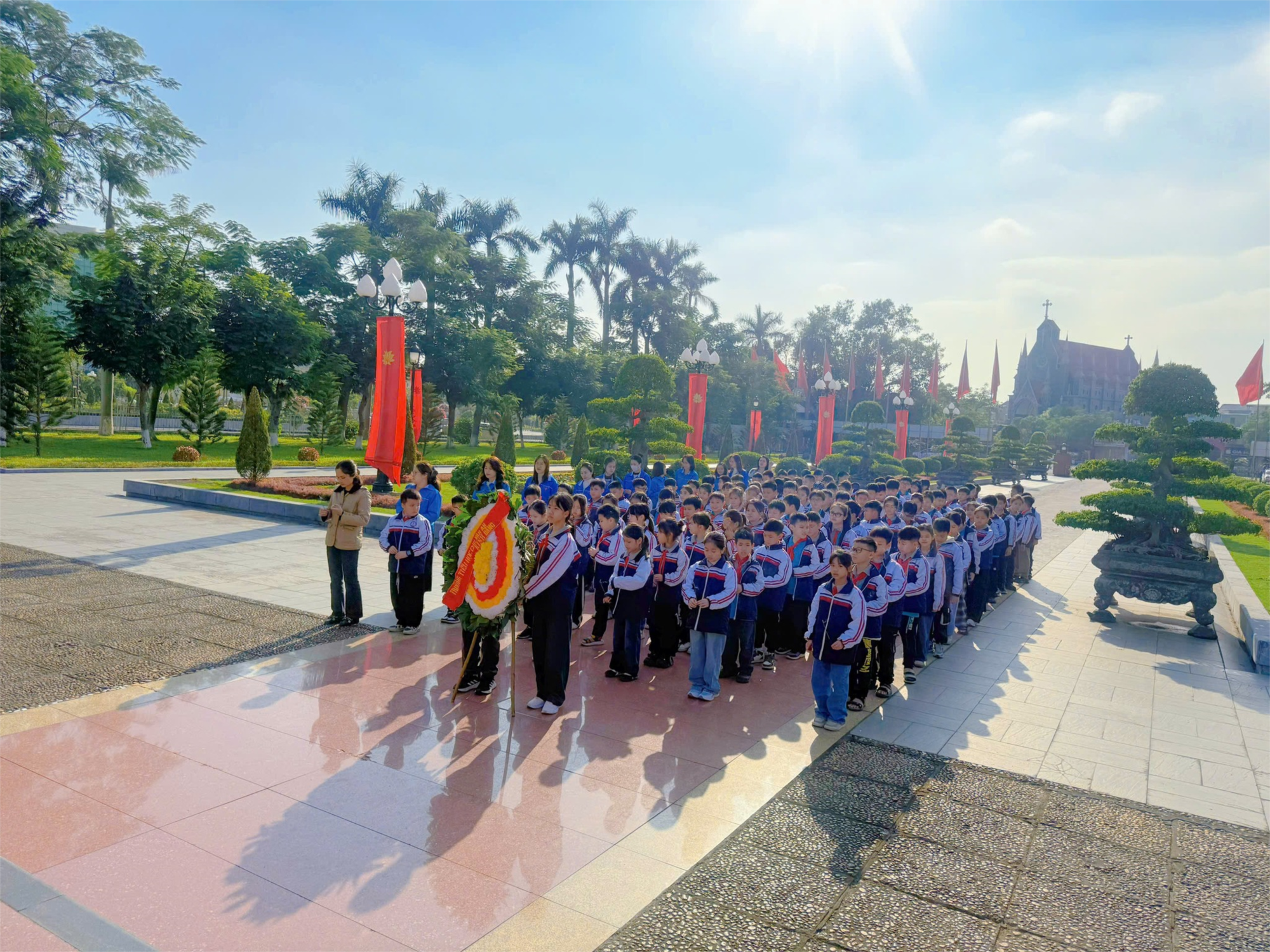 Thực hiện chương trình công tác Đội và phong trào thiếu nhi năm học 2025 -2026, về việc tổ chức cho các em học sinh tham gia hành trình "Em yêu Tổ quốc Việt Nam" nhằm giúp các em hiểu sâu hơn về lịch sử cũng như truyền thống yêu nước của dân tộc Nhân kỷ niệm 81 năm thành lập Quân đội Nhân dân Việt Nam 22/12, Được sự chỉ đạo của BGH nhà trường, các thầy cô giáo chi đoàn GV cùng các em học sinh trường TH Chu Văn An đến thăm và dâng hoa, hương tại Tượng đài Nguyễn Đức Cảnh, đài tưởng niệm nghĩa trang liệt sĩ Thành phố để tỏ lòng biết ơn, ghi nhớ công lao to lớn của các anh hùng liệt sĩ đã hy sinh vì độc lập, tự do của Tổ quốc, bồi dưỡng lòng yêu nước, niềm tự hào dân tộc