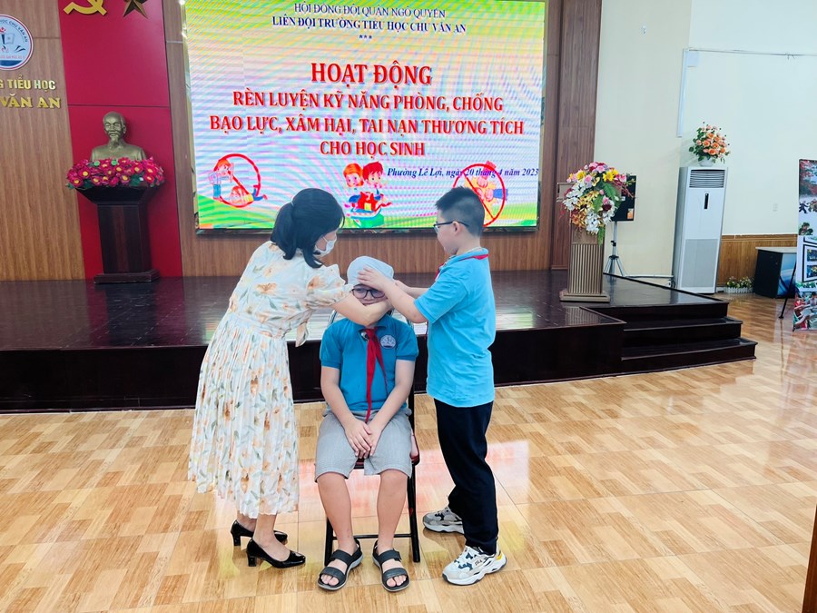 Để phòng tránh tai nạn thương tích (TNTT) cho trẻ, các thầy cô giáo trong Chi Đoàn nhà trường phối kết hợp với cán bộ y tế trường Tiểu học Chu Văn An đã chủ động tuyên truyền, nâng cao nhận thức cho các em học sinh về kỹ năng phòng, chống tai nạn thương tích. Qua buổi tuyên truyền các em đều hiểu TNTT là khó tránh khỏi trong cuộc sống hằng ngày, điều quan trọng là chúng ta xử lý ra sao, cách nhận biết những nơi có thể gây nguy hiểm. Biết thận trọng khi chơi với những đồ vật có thể gây nguy hiểm như: cây, gậy, dao, kéo, súng đồ chơi…; biết cách phòng tránh và xử lý khi bị ngã, chảy máu: học cách xử lý khi bị thương nhẹ, cách sơ cứu khi bị chảy máu, biết cách tìm sự trợ giúp khi xảy ra các tình huống tai nạn; phòng tránh và xử lý khi bị gãy tay, chân, cách tìm kiếm sự giúp đỡ khi ở nhà một mình, khi đi chơi, khi ở trường học…; phòng tránh và xử lý khi bị bỏng…