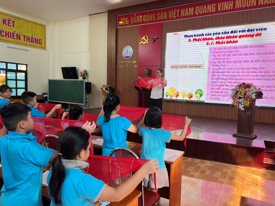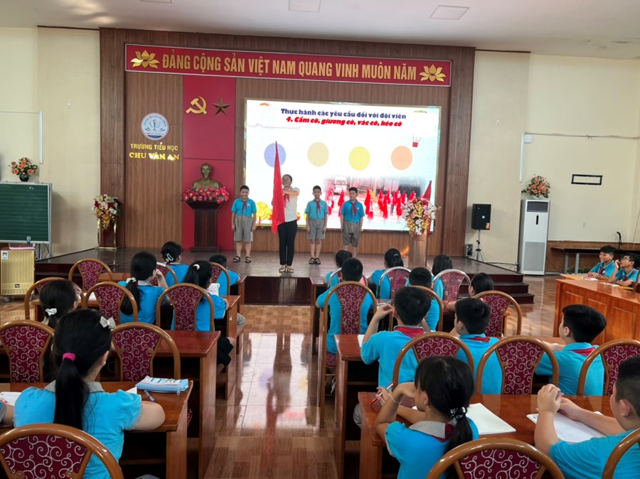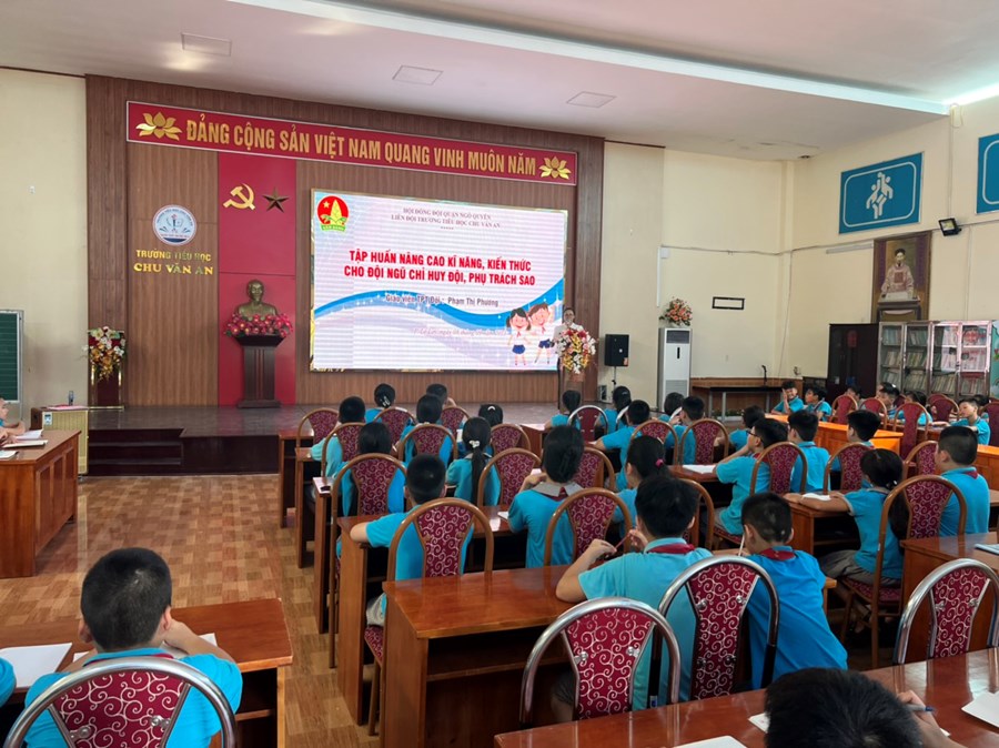 Thực hiện chương trình công tác Đội và phong trào thiếu nhi, nhằm nâng cao chất lượng cho Ban chỉ huy Liên đội năm học 2023-2024. Chiều ngày 08/9/2023, Liên đội trường tiểu học Chu Văn An tổ chức tập huấn kỹ năng, nghiệp vụ công tác cho 100 em đội viên.