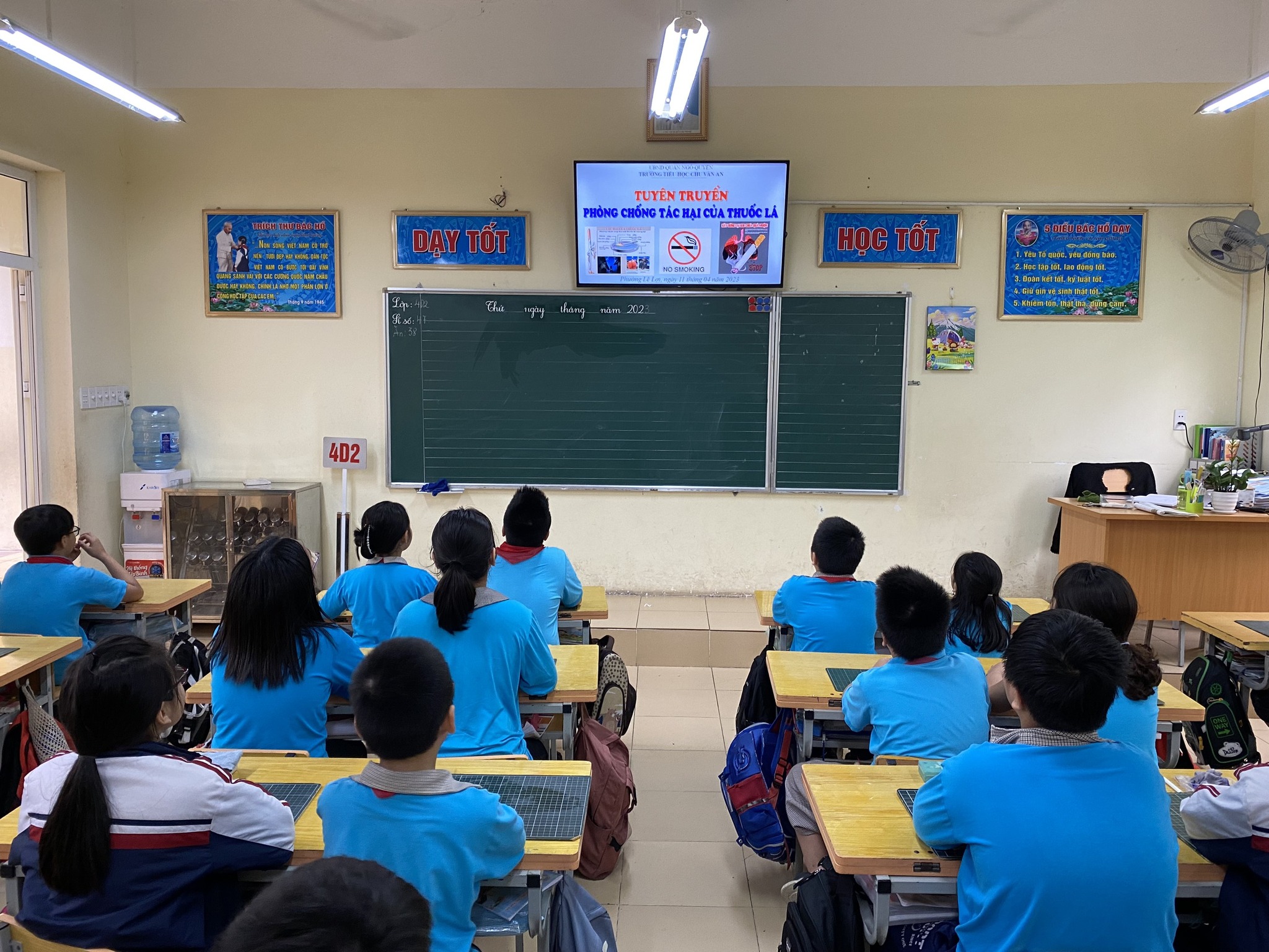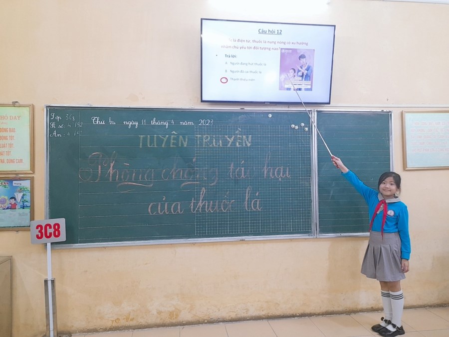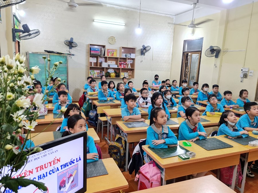 Để giúp trường học triển khai tốt công tác tuyên truyền, giáo dục phòng chống tác hại của thuốc lá và đặc biệt là thuốc lá mới. Ngày 11/4/2023, Liên đội trường tiểu học Chu Văn An tổ chức tuyên truyền về phòng chống tác hại thuốc lá tại các lớp học. Tại buổi tuyên truyền, toàn thể học sinh nhà trường đã được các cô giáo chủ nhiệm thông tin về thực trạng của việc hút thuốc lá ở Việt Nam; tình trạng hít khói thuốc lá thụ động; những nguy cơ mắc phải khi hút thuốc và hít phải khói thuốc lá; tác hại của hút thuốc lá, đặc biệt hút thuốc lá điện tử trong thanh thiếu niên… Đồng thời cung cấp thêm nhiều kiến thức về Luật Phòng, chống tác hại của thuốc lá, quy định xử phạt vi phạm pháp luật trong phòng chống tác hại thuốc lá.