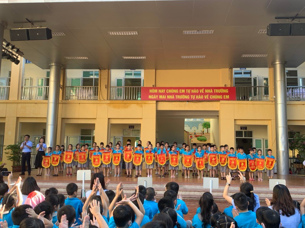 Lễ chào cờ đã được bạn Hoàng Hữu Nguyên - Liên đội trưởng dẫn chương trình nhịp nhàng và mạch lạc, thể hiện vai trò là Liên đội trưởng đầy nhiệt huyết trong phong chào Đội. Sau phần chào cờ trang nghiêm, cô Phạm Thị Phương - TPT Đội đã điểm lại những thành tích mà Liên đội đã đạt được trong tháng 9 và phát động phong trào thi đua trong tháng 10. Tiếp đến các lớp đã được sướng tên sau một tháng rèn rũa, cố gắng, với 42 chi đội và lớp nhi đồng xuất sắc được nhận cờ thi đua Xuất sắc của nhà trường. Liên đội biểu dương 102 gương học sinh tiêu biểu, em Chu Khánh Phương đạt giải nhì cấp Quận, giải khuyến khích cấp Thành phố Hội thi tin học trẻ năm học 2021-2022 . Sau phần trao thưởng là lời căn dặn ân cần của cô Hiệu trưởng - Phạm Thị Diện. Toàn Liên đội cùng hô vang "QUYẾT TÂM - QUYẾT TÂM" phấn đấu đạt được nhiều thành tích trong tháng 10 góp phần hoàn thành xuất sắc nhiệm vụ năm học 2022-2023. LỄ CHÀO CỜ THÁNG 10 ĐÃ THÀNH CÔNG TỐT ĐẸP./.