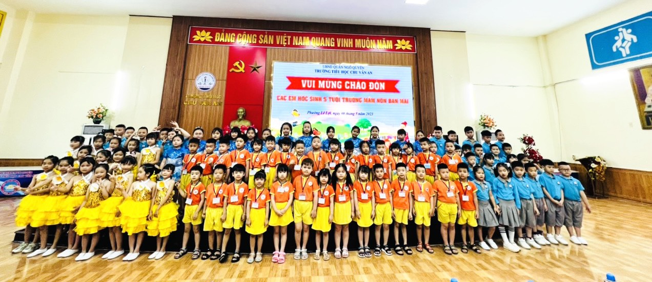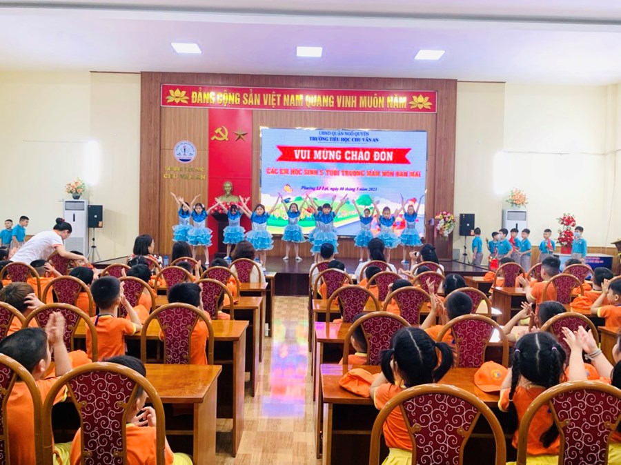 Sáng thứ hai ngày 08/5/2023 trường tiểu học Chu Văn An tổ chức chào đón các em học sinh 5 tuổi trường mầm non Ban Mai đến thăm và trải nghiệm trường. Đây là một trong những hoạt động chăm sóc, giáo dục trẻ của nhà trường tạo cho trẻ không khí vui tươi, phấn khởi và hào hứng khi tham gia, giúp trẻ chuẩn bị tâm thế sẵn sàng lên lớp 1.