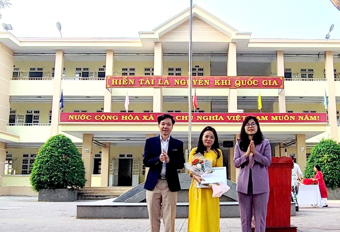 Cũng tại buổi tuyên dương, Giám đốc Sở Giáo dục và Đào tạo đã trao thưởng cho cô Võ Thị Ngọc Ánh - Tổ trưởng chuyên môn - một trong những giáo viên sáng tạo và có sản phẩm nằm trong Top 150 sản phẩm xuất sắc nhất của Diễn đàn “Đổi mới sáng tạo Giáo dục Việt Nam trên nền tảng công nghệ thông tin năm 2022-2023” do Cục Nhà giáo và Cán bộ quản lý giáo dục (Bộ Giáo dục và Đào tạo) tổ chức ngày 18/3/2023 tại Đồng Nai vừa qua.