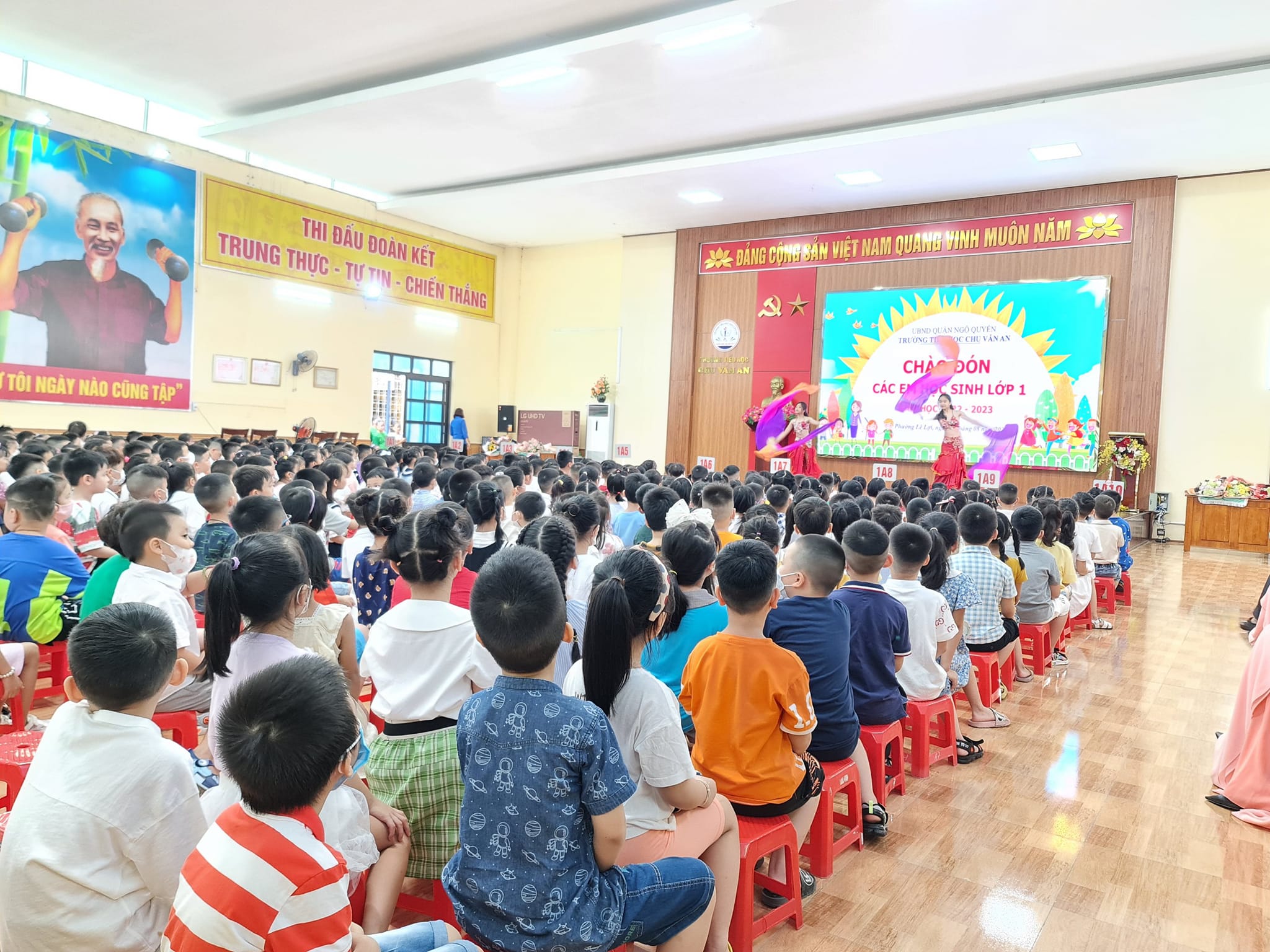 Ngày đầu đến ngôi trường mới, chắc hẳn các em không khỏi rụt rè, bỡ ngỡ, đứng nép bên người thân, có những đôi mắt đỏ hoe không muốn rời tay mẹ vì sự lạ lẫm, lạ thầy cô, lạ với những người bạn xung quanh. Một ngôi trường mới, vô cùng rộng lớn, khang trang, bề thế hiện trước đôi mắt trong veo của các em. Nhưng nhanh thôi, cảm giác đó sẽ dần tan biến vì các em sẽ nhận được tình yêu thương, sự ân cần của các các cô giáo. Và ở nơi đây, dưới mái trường này, các em sẽ được các thầy cô dạy đọc, dạy viết, dạy làm phép tính, rồi học đàn, học múa, học hát, học vẽ, luyện tập thể dục thể thao, được học các kĩ năng sống, rèn luyện bản thân, tu dưỡng đạo đức, được cùng vui chơi với các bạn học sinh khác và tham gia tất cả các hoạt động bổ ích của nhà trường. Sẽ có thật nhiều trải nghiệm thú vị đang chờ đón các bạn với 5 năm của bậc Tiểu học, trong đó, chương trình đón chào học sinh lớp 1 hôm nay chính là món quà đầu tiên do Ban Giám hiệu, các thầy cô giáo trường Tiểu học Chu Văn An cùng các anh chị học sinh các lớp lớn, phối hợp với Hội cha mẹ học sinh nhà trường long trọng tổ chức chào mừng các em và các bậc phụ huynh học sinh lớp 1 năm học 2022 - 2023.