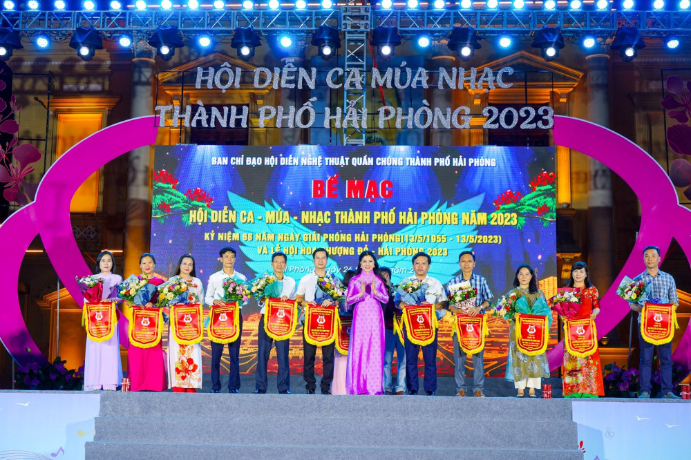 Nhân dịp này, Sở Văn hóa và Thể thao khen thưởng Trung tâm Văn hóa thành phố Hải Phòng, đơn vị tổ chức thành công Hội diễn Ca Múa Nhạc thành phố Hải Phòng năm 2023.