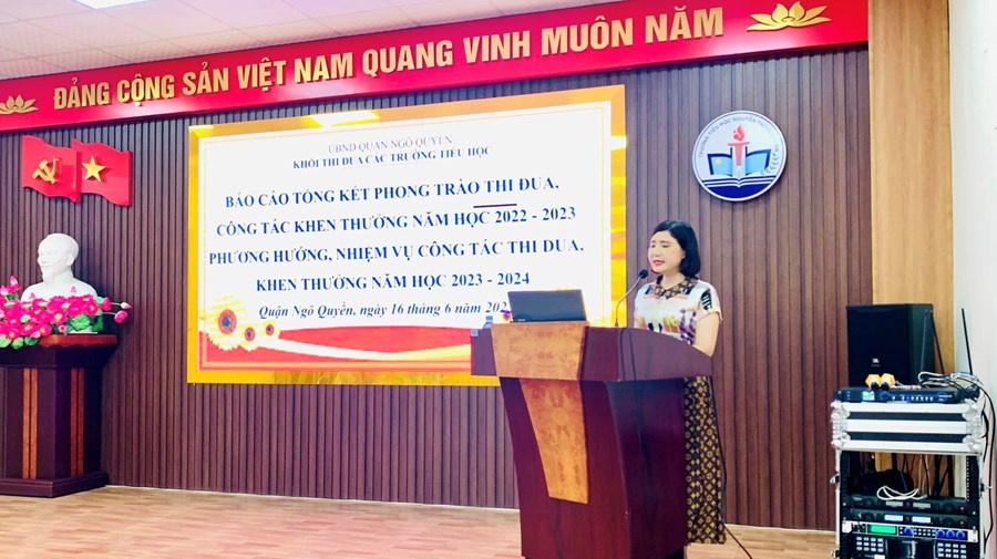 Thay mặt Phòng GD&ĐT quận Ngô Quyền, đồng chí Nguyễn Thị Hải Hạnh, Phó phòng GD&ĐT quận đã hoàn toàn nhất trí với các nội dung tại Hội nghị. Đồng chí đã nhấn mạnh kết quả mỗi nhà trường đạt được và động viên các nhà trường tiếp tục phấn đấu trong năm học 2023-2024 đạt kết quả tốt hơn nữa. Đ/c Nguyễn Văn Hạ, chuyên viên GD&ĐT quận đã phát biểu về công tác thi đua khen thưởng và hướng dẫn các trường hoàn thiện hồ sơ thi đua đúng tiến độ.